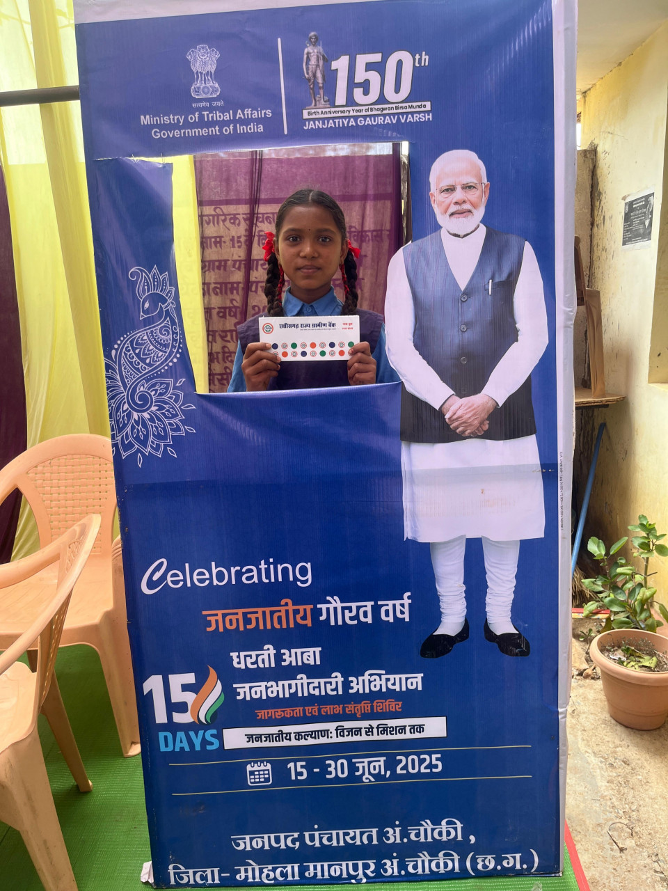 धरती आबा जनभागीदारी अभियान के अंतर्गत बालोद जिले में आज विभिन्न विकासखंडों के ग्राम भीमकन्हार (डौण्डीलोहारा), पथराटोला (डौण्डी), बोड़की (बालोद) और खैरबना (गुण्डरदेही) में लाभ संतृप्ति शिविरों का आयोजन किया गया। शिविरों में केंद्र सरकार की 25 सेवाओं और योजनाओं के अंतर्गत सैकड़ों ग्रामीणों को त्वरित लाभ प्रदान किया गया।
